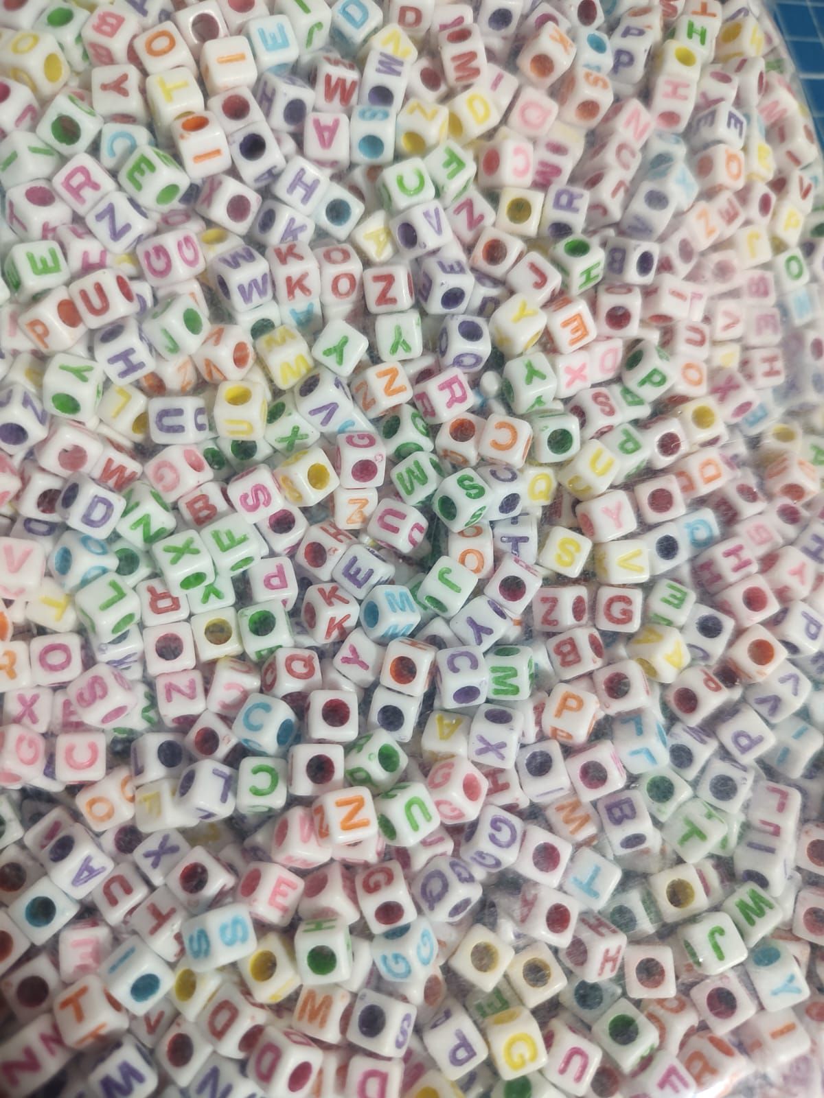 Miçangas coloridas entremeios quadrada com letras sortidas.